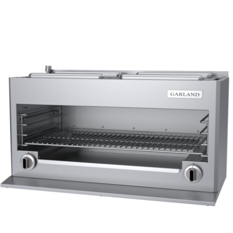 Garland Cuisine Series Cheesemelter, gas, 34" W, countertop/wall mount, (2) 15,000 BTU infrared burners with individual controls, chrome plated rack with (4) position glides, large removable grease pan, stainless steel front, top, sides & backsplash, 30,000 BTU (U S Range)