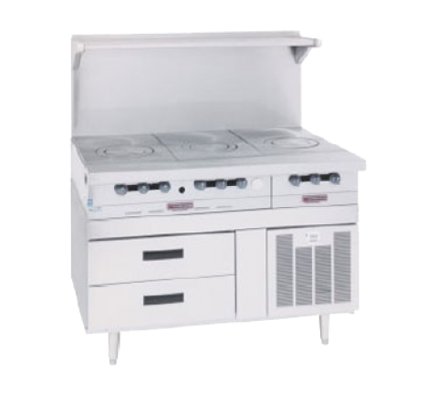 Arctic Fire Refrigerator Base, remote refrigeration, 68" W, two-section, (4) self-closing drawers with center pull handles, stainless steel exterior, 6" stainless steel legs (available only when ordered with Master Series modular cook tops) 115v/60/1-ph, 1.5 amps (Garland)