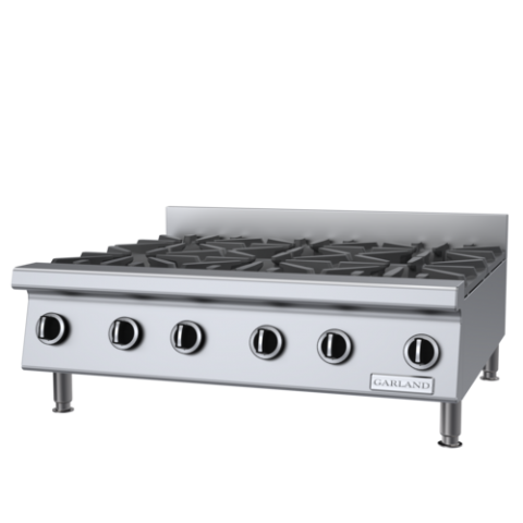 Signature Hotplate, 36" W, countertop, gas, heavy-duty, (6) 30,000 BTU Starfire Pro open burners, manual controls, pilot lights, stainless steel front, sides and back, 3-1/2" front rail, 4" high adjustable legs, 180,000 BTU (Garland), CSA, NSF
