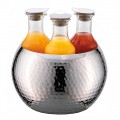 Frilich® Carafine Beverage Tub Set, 12-3/5" dia. x 12-9/10"H, includes: (3) 1.3 qt. (1.2 liter) Tritan plastic carafes with stainless steel lids, double wall stainless steel tub, removable stainless steel crushed ice tube, hammered finish
