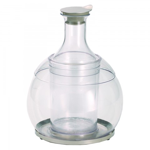 Frilich® Carafine Beverage Tub Set, 8-7/10" dia. x 11-3/5"H, 4-1/10" dia. opening, includes: (1) 1.3 qt. (1.2 liter) Tritan plastic carafe, clear, with stainless steel lid, (1) Tritan plastic tub, clear, stainless steel drip tray