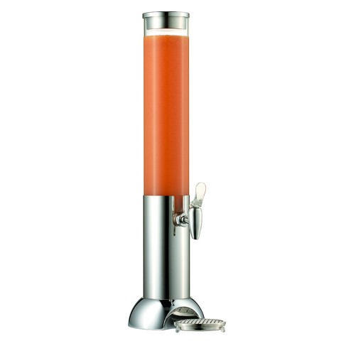 Frilich® Connect Juice Dispenser Set, 3.2 qt. (0.8 gallon/3 liter), 6-7/10" dia. x 27"H, includes: acrylic container, lid, faucet, cooling packs in lid and base, stainless steel drip tray and base