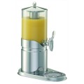 Frilich® Elegance Juice Dispenser Set, 2.6 qt. (0.7 gallon / 2.5 liter), 13-1/5" x 8-1/10" x 17-1/10"H, includes: SAN plastic container, crushed ice tube, drip tray, cooling pack in base, stainless steel base