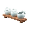Frilich® Pure Nature Condiment Display Bowl Bar, small, 17-7/10"L x 8-3/10"W x 4-9/10"H, includes: (3) 16.9 oz. (0.5 liter) china bowls with lids & lid holders, natural beech multiplex wood base (Ready to Ship from Factory - 4-6 weeks for transit)