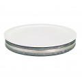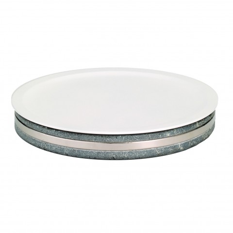 Frilich® Earth Cold Food Display Set, 16-1/10" dia. x 2-4/5"H, round, includes: white china plate, cooling pack, insulated basin, gray soapstone base with stainless steel hoop
