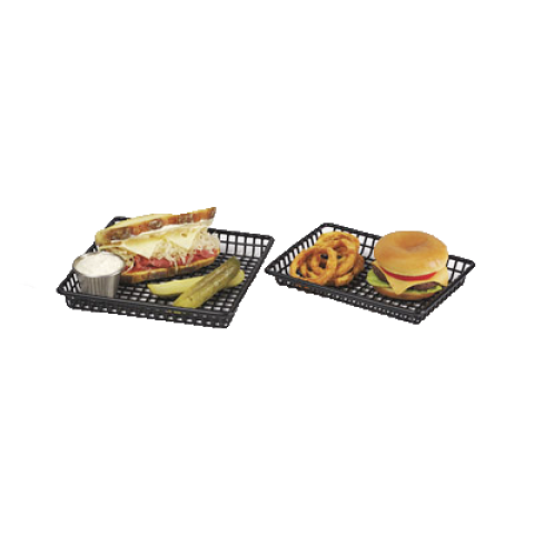 Grid Basket, 9" x 7" x 1-1/8", rectangular, iron polyethylene coated, black