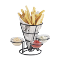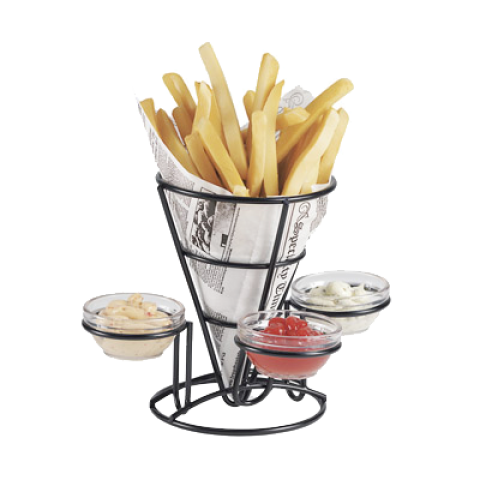 Fry Cone Basket, 5" dia. x 7"H, with (3) condiment cup holders, iron powder coated, black (fits 4-84100, 4-84111, 4-84105, ER-020, ER-025, ER-402, S-620, RM-387, F-625, RM-203, S-617)