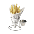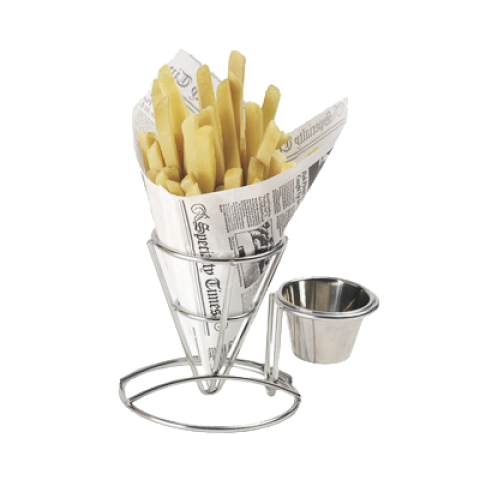 Fry Cone Basket, 3-3/4" dia. x 5"H, with (1) 3-3/4" dia. condiment cup holder, stainless steel (fits 4-84100, 4-84111, 4-84105, ER-020, ER-025, ER-402, S-620, RM-387, F-625, RM-203, S-617)