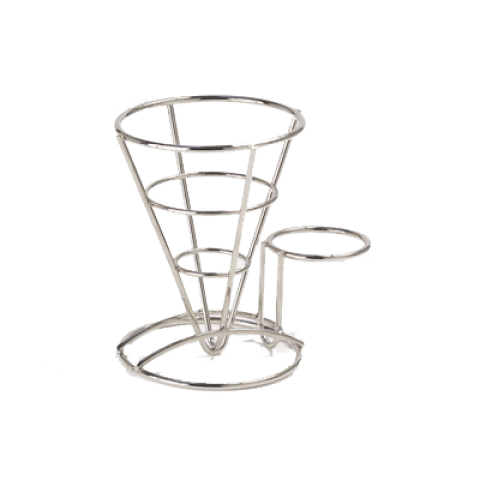 Fry Cone Basket, 5" dia. x 7"H, round, with (1) 2-3/4" dia. condiment cup holder, stainless steel (fits 4-84100, 4-84111, 4-84105, ER-020, ER-025, ER-402, S-620, RM-387, F-625, RM-203, S-617)