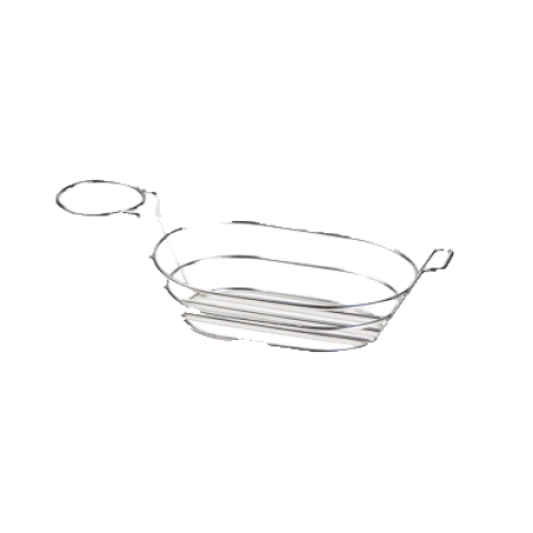 Basket, 9" x 6" x 3-1/2", oval, with handle & (1) condiment cup holder, stainless steel (Fits 4-84100, 4-84111, 4-84105, RM-203, S-620, F-625, ER-025)