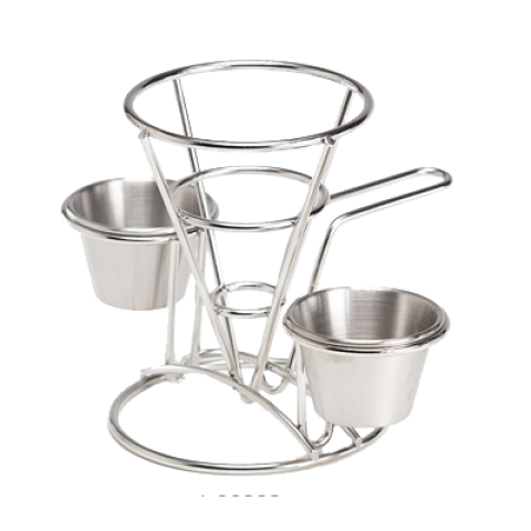 Clipper Mill Fry Cone Basket, 4-1/4 dia. x 6"H, with (2) 2-3/4" dia. condiment cup holders, stainless steel (fits 4-84100, 4-84111, 4-84105, ER-020, ER-025, ER-402, S-620, RM-387, F-625, RM-203, S-617)