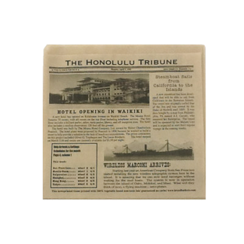 Food-Safe Bag/Wire Cone Basket Liner, double-open, 7" x 7", paper, Honolulu newsprint, brown (2000 pieces per case)