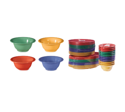 Diamond Mardi Gras™ Bowl, 10 oz. (10 oz. rim full), 5-1/2" dia. x 2-1/4"H, round, narrow rim, break-resistant, dishwasher safe, BPA free, melamine, mix pack of 4 Mardi Gras™ colors (tropical yellow, rio orange, peacock blue & rainforest green), NSF