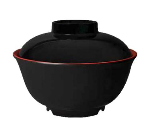 Fuji™ Bowl, 12 oz. (12 oz. rim full), 4-3/4" dia. x 2-1/4"H, round, with lid, break-resistant, dishwasher safe, BPA free, melamine, red/black, NSF