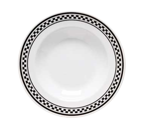 Diamond Chexers™ Bowl, 16 oz. (25-4/5 oz. rim full), 11-1/4" dia. x 1-3/4"H, round, wide rim, break-resistant, BPA free, dishwasher safe, melamine, white with black checkerboard pattern on rim, NSF