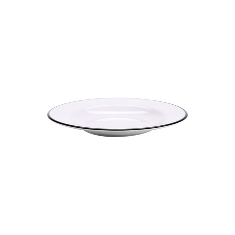 Settlement Bistro™ Enamelware Bowl, 24 oz. (28 oz. rim-full), 11" x 1-1/4", dishwasher safe, melamine, white with black trim, NSF, BPA Free