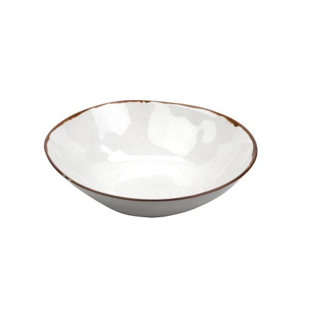 Rustic Mill™ Bowl, 11 qt., 18" dia. x 4-1/2"H, round, irregular, break-resistant, dishwasher safe, melamine, cream base with brown speckles & brown rim, NSF, BPA free