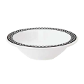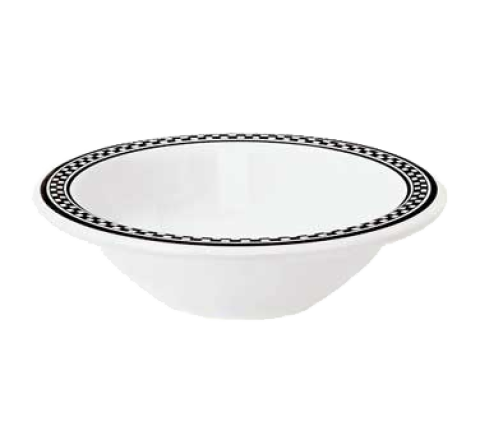 Diamond Chexers™ Bowl, 4-1/2 oz. (5 oz. rim full), 4-3/4" dia. x 1-1/4"H, round, narrow rim, break-resistant, dishwasher safe, BPA free, melamine, white with black checkerboard pattern on rim, NSF