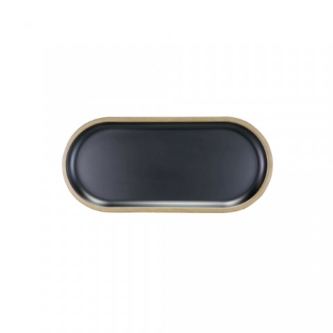 Elite Global Solutions - Plate, 12-5/8"L x 5-7/8"W x 3/4"H, oval, break, chip, stain & scratch resistant, dishwasher safe, BPA free, melamine, black with gold rim decal, Kobe