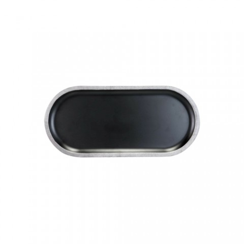 Elite Global Solutions - Plate, 12-5/8"L x 5-7/8"W x 3/4"H, oval, break, chip, stain & scratch resistant, dishwasher safe, BPA free, melamine, black with silver rim decal, Kobe
