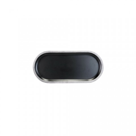 Elite Global Solutions - Plate, 10-1/4"L x 4-3/4"W x 3/4"H, oval, break, chip, stain & scratch resistant, dishwasher safe, BPA free, melamine, black with silver rim decal, Kobe