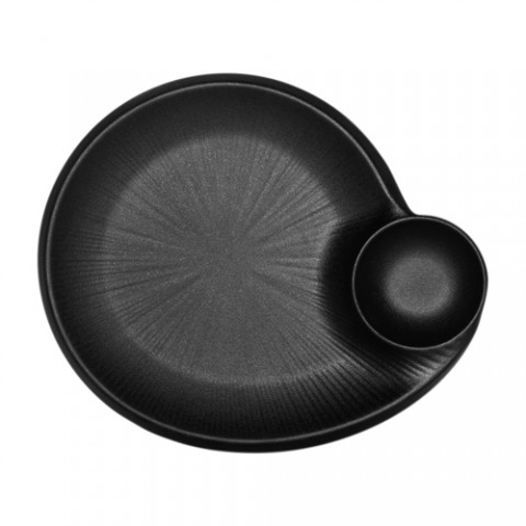 Elite Global Solutions - Chip & Dip Plate, 1-1/2 oz., 9-1/2" x 8" x 1"H, round, break, chip, stain & scratch resistant, dishwasher safe, BPA free, melamine, black, Hermosa