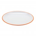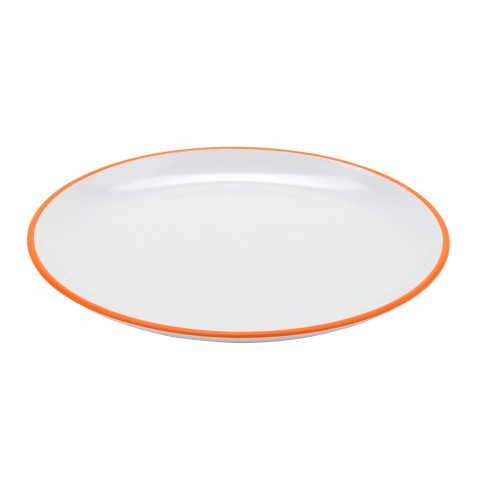 Settlement™ Oasis™ Dinner Plate, 10-1/2" dia., round, break-resistant, dishwasher safe, BPA Free, melamine, white with tangerine orange trim, NSF (to be discontinued, contact factory for availability)