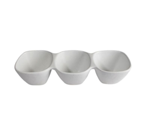 Bugambilia® Condiment Bowl, 3-division, 20-1/4 oz., 15"L x 5.3"W, 3.1" deep, cast aluminum with resin coating, fire red (3-4 week lead time)