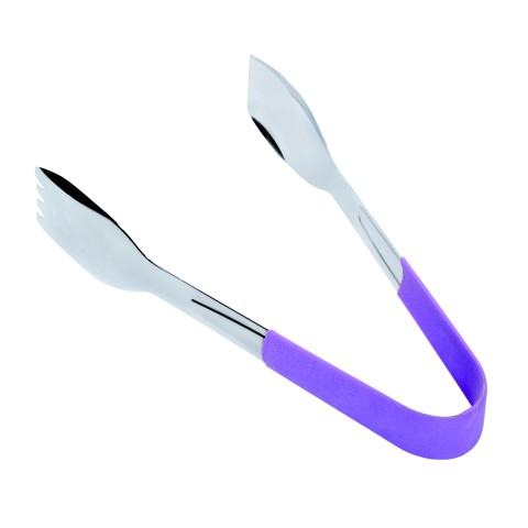 Serving Tongs, 9"L, dishwasher safe, purple high temp PVC cool-grip handle, stainless steel, mirror finish (to be discontinued, contact factory for availability)