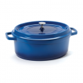 Heiss™ Induction Dutch Oven, 6-1/2 qt. (7 qt. rim full), 11" dia. x 4-1/2"H, round, with lid, heat resistant to 500°F, oven/induction/gas/electric/open flame safe, dishwasher safe, chip and stain resistant, cast aluminum with ceramic enamel coating, cobalt blue with black interior, clear coat finish
