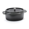 Heiss™ Induction Dutch Oven, 6-1/2 qt. (7 qt. rim full), 12-1/8" x 9-7/8" x 4-1/4"H, oval, with lid, heat resistant to 500°F, oven/induction/gas/electric/open flame safe, dishwasher safe, chip and stain resistant, cast aluminum with ceramic enamel coating, gray with black interior, clear coat finish
