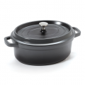 Heiss™ Induction Dutch Oven, 3-1/2 qt. (3-3/4" qt. rim full), 10-1/4" x 7-7/8" x 3-1/2"H, oval, with lid, heat resistant to 500°F, oven/induction/gas/electric/open flame safe, dishwasher safe, chip and stain resistant, cast aluminum with ceramic enamel coating, gray with black interior, clear coat finish
