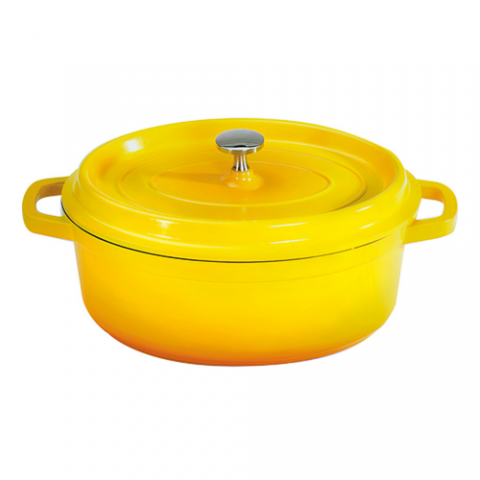 Heiss™ Induction Dutch Oven, 3-1/2 qt. (3-3/4" qt. rim full), 10-1/4" x 7-7/8" x 3-1/2"H, oval, with lid, heat resistant to 500°F, oven/induction/gas/electric/open flame safe, dishwasher safe, chip and stain resistant, cast aluminum with ceramic enamel coating, yellow with black interior, clear coat finish (to be discontinued, contact factory for availability)