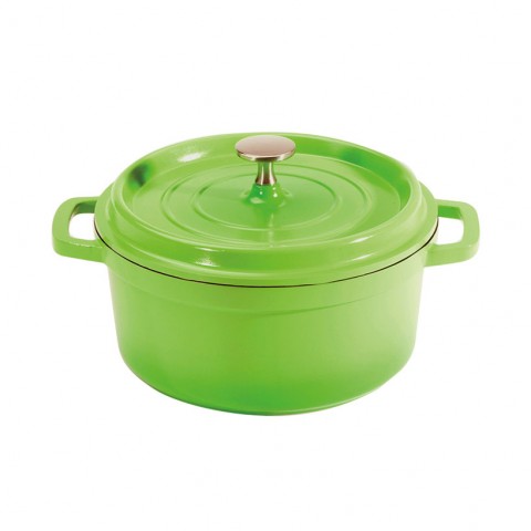 Heiss™ Induction Dutch Oven, 2-1/2 qt. (2-4/5 qt. rim full), 7-7/8" dia. x 3-1/2"H, round, with lid, heat resistant to 500°F, oven/induction/gas/electric/open flame safe, dishwasher safe, chip and stain resistant, cast aluminum with ceramic enamel coating, green with black interior (to be discontinued, contact factory for availability)