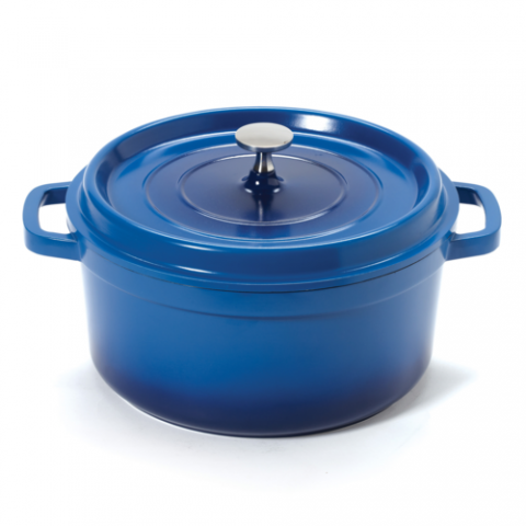 Heiss™ Induction Dutch Oven, 4-1/2 qt. (5 qt. rim full), 9-1/2" dia. x 4-1/4"H, round, with lid, heat resistant to 500°F, oven/induction/gas/electric/open flame safe, dishwasher safe, chip and stain resistant, cast aluminum with ceramic enamel coating, cobalt blue with black interior, clear coat finish