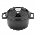 Heiss™ Induction Dutch Oven, 3/4 qt. (15/16 qt. rim full), 6" dia. x 2-7/8"H, round, with lid, heat resistant to 500°F, oven/induction/gas/electric/open flame safe, dishwasher safe, chip and stain resistant, cast aluminum with ceramic enamel coating, gray with black interior, clear coat finish