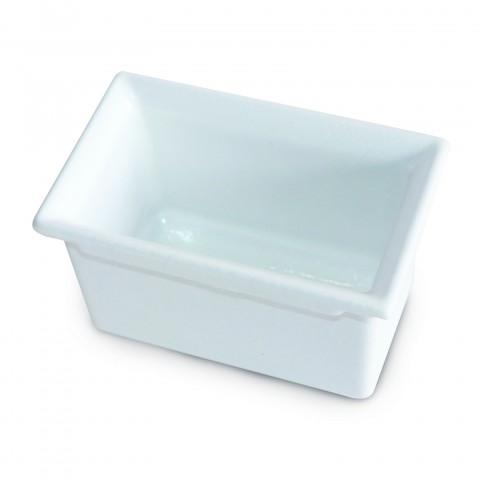 Bugambilia® Fit Perfect™ Food Pan, 1/9 size, 1 qt., 6-73/100"L x 4-3/25"W, 4“ deep, stackable, dishwasher safe, cast aluminum with resin coating, smooth MOD finish, white (edge to edge dimensions match standard stainless steel food pans) (PATENT PENDING)