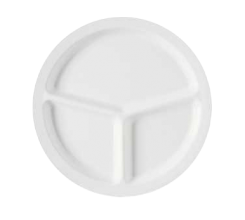 Supermel™ Plate, 10" dia., 3-compartments, break-resistant, dishwasher safe, melamine, white, NSF