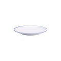 Settlement Bistro™ Enamelware Dinner Plate, 11", round, dishwasher safe, melamine, white with cobalt blue trim, NSF, BPA Free