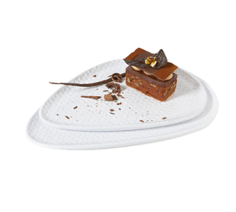 Coralline™ Plate, 10-3/4" x 8-3/4" x 6-3/4", freestyle triangular, break resistant & dishwasher safe, BPA free, melamine, white with weave texture, NSF