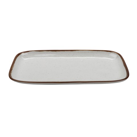 Rustic Mill™ Display Tray, 15" x 7-1/2", rectangular, coupe, irregular, break-resistant, dishwasher safe, melamine, cream base with brown speckles & brown rim, NSF, BPA free