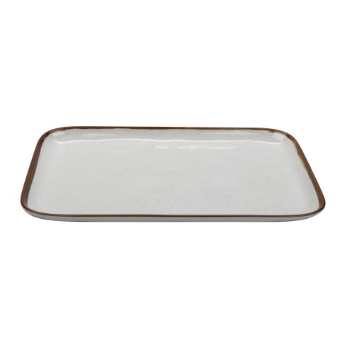 Rustic Mill™ Display Tray, 18" x 11", rectangular, coupe, irregular, break-resistant, dishwasher safe, melamine, cream base with brown speckles & brown rim, NSF, BPA free