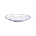 Settlement Bistro™ Enamelware Dinner Plate, 9", round, small, dishwasher safe, melamine, white with cobalt blue trim, NSF, BPA Free