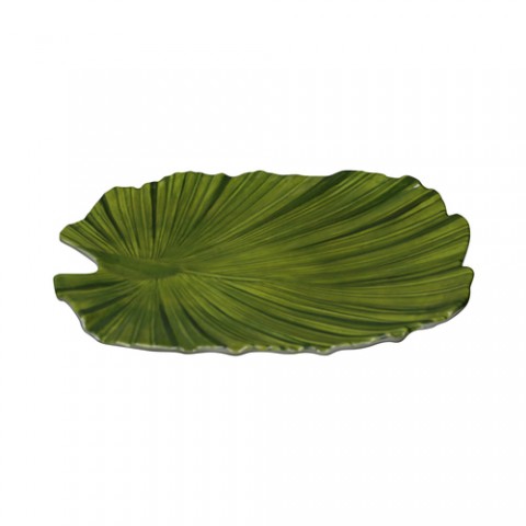 Elite Global Solutions - Plate, 8"L x 7-3/4"W x 1"H, small, coupe, palm leaf shape, design green, break, chip, stain & scratch resistant, dishwasher safe, BPA free, melamine, Tropicana