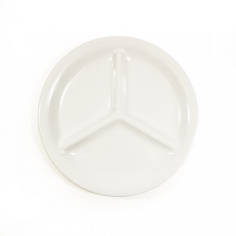 Elite Global Solutions - Plate, 9" dia. x 1"H, round, 3-compartment, break, chip, stain & scratch resistant, dishwasher safe, BPA free, melamine, white, Meal Axis