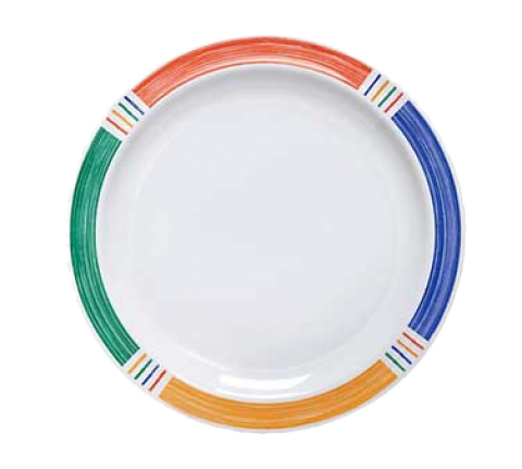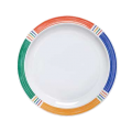 Creative Table™ Supermel™ Dinner Plate, 10" dia., narrow rim, break-resistant, dishwasher safe, melamine, white with Barcelona™ pattern on rim, NSF
