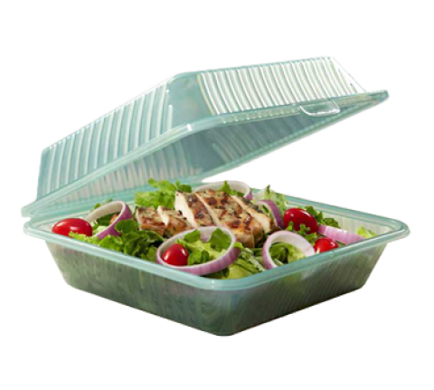 G.E.T Food Container, 9"L x 9"W x 3-1/2"H, single entree, 1-compartment, leak-resistant snap closure, stackable, reusable, recyclable, break-resistant, dishwasher safe, microwave safe for re-heating, BPA free, polypropylene, jade, Eco-Takeout's®, NSF