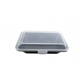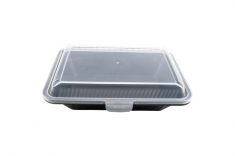 G.E.T Food Container, 9"L x 6.5"W x 2.75"H, half-size, leak-resistant snap closure, stackable, reusable, recyclable, break-resistant, dishwasher safe, microwave safe for re-heating, BPA free, polypropylene, black/clear, Eco-Takeout's®, NSF