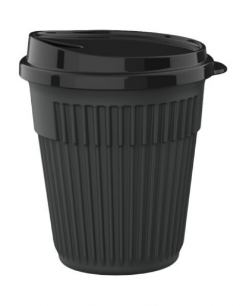 Ribbed Cup, 12 oz., 3-1/2" top dia., with lid (EC-200-LID-BK) GET, Eco -Takeouts