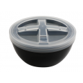 G.E.T Soup Container, 32 oz. (41 oz rim full), 6-1/2" top dia. x 3.25"H, half-size, leak-resistant snap closure, stackable, reusable, recyclable, break-resistant, dishwasher safe, microwave safe for re-heating, BPA free, polypropylene, black/clear, Eco-Takeout's®, NSF